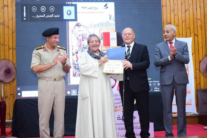 وذكرت انتصار أبو الدهب مدير النشاط الثقافي، أنه فى ختام الحفل تم تكريم كلاً من جندي مقاتل جلال عبد الرحمن من سلاح المشاه، وجندي مقاتل عبد الرحيم فرغلي من سلاح المركبات، وهم من المحاربين القدامى أبطال حرب أكتوبر، كما تم تكريم ٢٥ طالب وطالبة من مختلف كليات الجامعة الفائزين في المسابقة الثقافية التي نفذتها إدارة النشاط الثقافي عن انتصارات أكتوبر .
