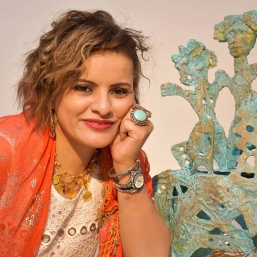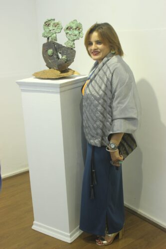 وقدمت الفنانة في هذا المعرض مجموعة من أعمالها النحتية من خامة البرونز أتت استمراراً لتجربتها الشخصية في محاولات اللعب مع الخامة بحثاً وتجريباً للوصول إلى حالة خاصة بها والتي رغبت أن تكون بعيدة عن المدرسة الأكاديمية وأن تقترب أكثر إلى حالة الفطرة الإنسانية البدائية الأولى والتي ترى فيها أن مساحات الصدق بها أكبر وبالتالي سلاسة الوصول إلى وجدان المتلقي الذي حتماً يتذكر حين يشاهدها ملامح من طفولته ولهوه بالصلصال وما أنتجته براءته من أشكال.