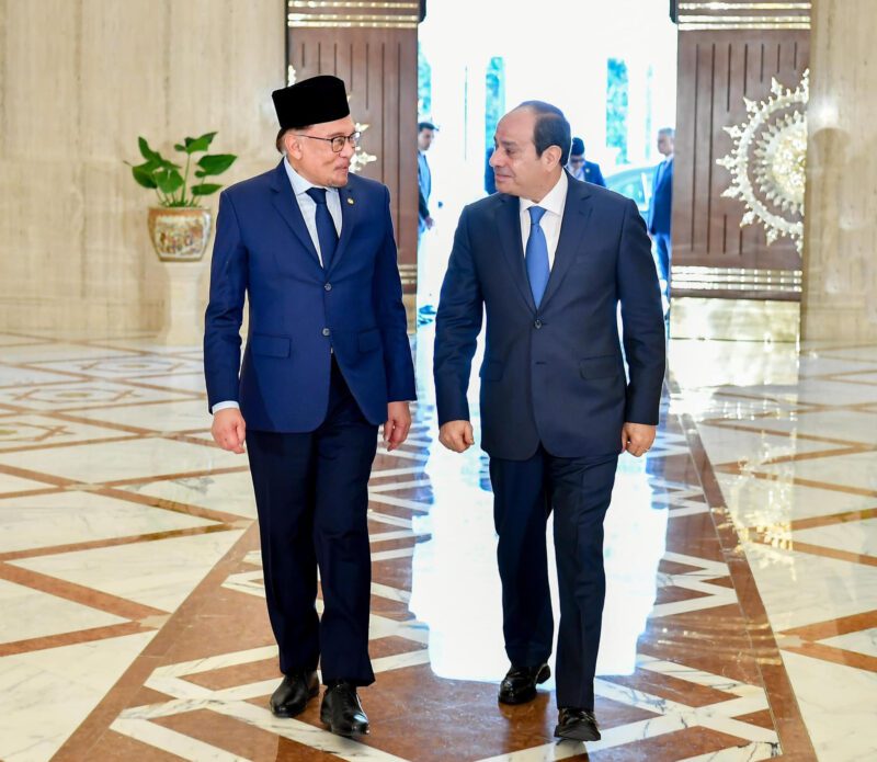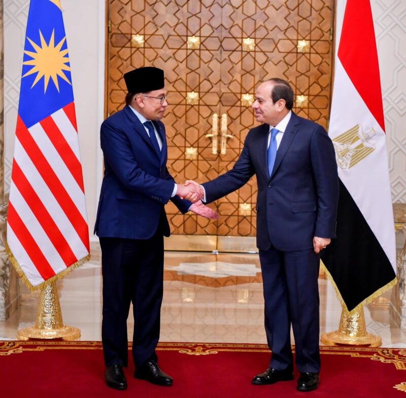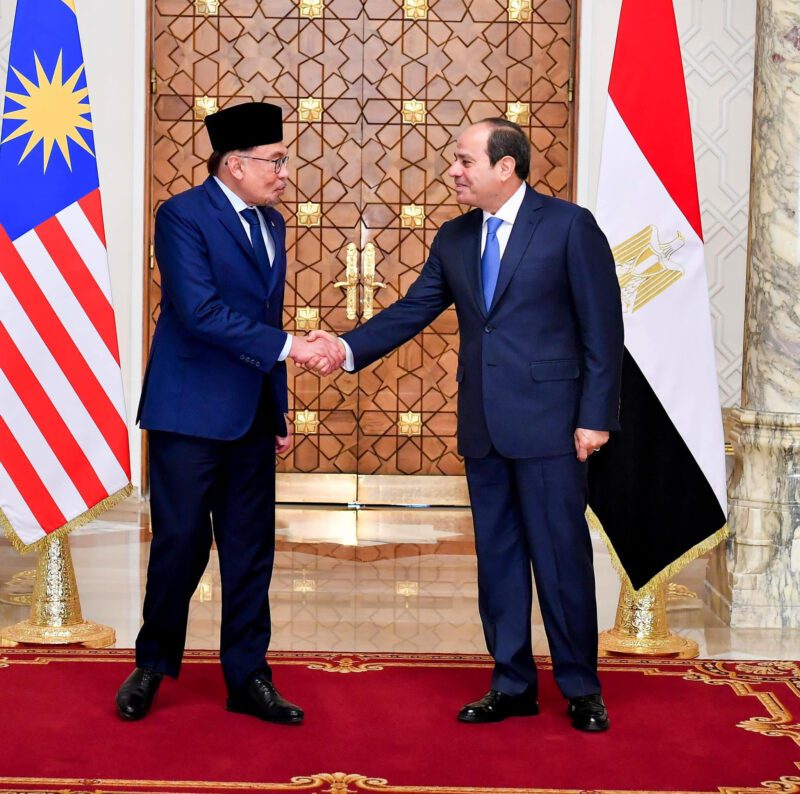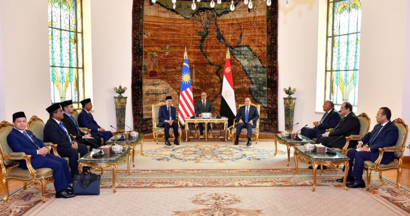 كما أكد الجانبان ضرورة الاستمرار في توفير النفاذ الآمن والعاجل للمساعدات الإنسانية إلى أهالي القطاع، حيث أشاد رئيس الوزراء الماليزي بالجهود المصرية المكثفة في هذا الصدد. وأعرب الزعيمان أيضاً عن القلق من خطورة اتساع رقعة العنف إلى المنطقة، مع التشديد على الرفض التام لتصفية القضية الفلسطينية من خلال فكرة التهجير القسري لأهالي غزة، وتأكيد أن المخرج الوحيد للوضع المتأزم الراهن هو تكاتف المجتمع الدولي للعمل على إيجاد الحل العادل والشامل للقضية الفلسطينية على أساس حل الدولتين وفق مرجعيات الشرعية الدولية، بما يحفظ الحقوق المشروعة للشعب الفلسطيني.