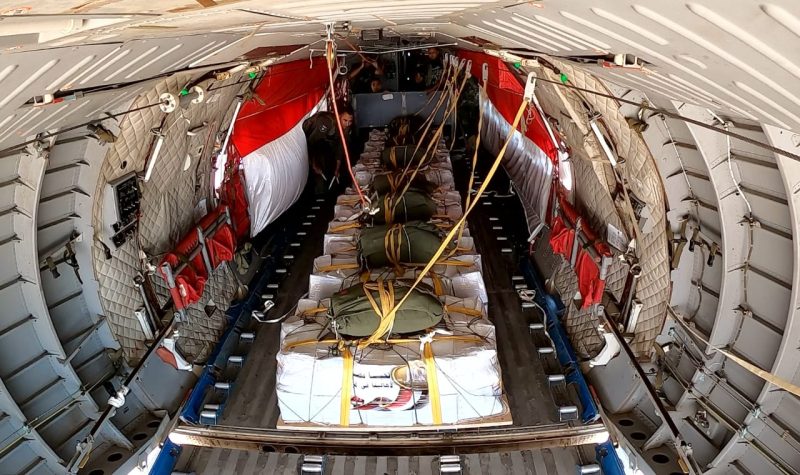 وأقلعت 12 طائرة نقل عسكرية على مدار الثلاثة أيام الماضية، محملة بكميات كبيرة من المساعدات الغذائية لتنفيذ أعمال الإسقاط الجوي على المناطق التي يصعب الوصول إليها برا بقطاع غزة، وذلك بالتزامن مع استمرار المساعي المصرية لتدفق الشاحنات المحملة بالمساعدات للقطاع برا.