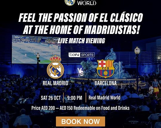 كشف ريال مدريد ورلد، أحدث المتنزهات الترفيهية في دبي، والذي يعد جزءاً من دبي باركس™ آند ريزورتس، المدينة الترفيهية الأكبر من نوعها في الشرق الأوسط والوجهة العائلية الأبرز للمرح والترفيه، عن استضافته بثاً حياً على الهواء مباشرة لمباراة الكلاسيكو التي تجمع بين قُطبَي الكرة الإسبانية ريال مدريد وبرشلونة، وهي المباراة التي تعد واحدةً من أقوى المواجهات الكروية في العالم، حيث يدعو المتنزه عشاق الساحرة المستديرة والمشجعين لمتابعة هذه المباراة التي سيجري بثها مباشرةً من ملعب سانتياغو برنابيو، معقل نادي ريال مدريد يوم السبت الموافق 26 أكتوبر الجاري.