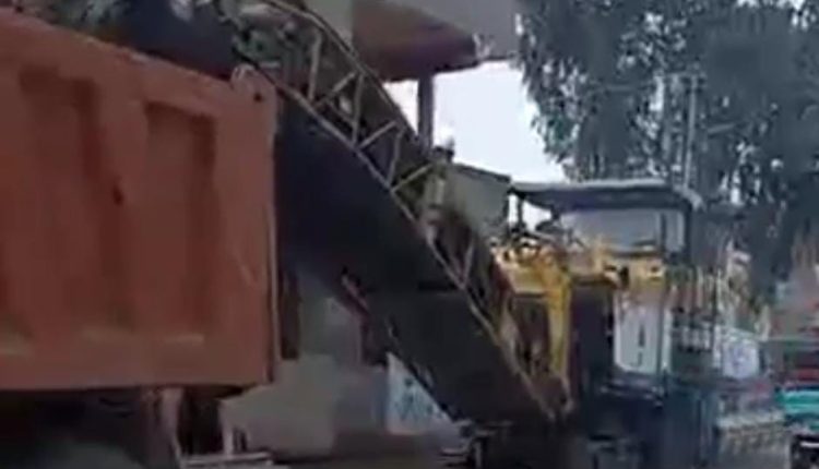 واليوم بدأ العمل بقحت الاسفلت القديم ونقله الي محطة الخلط حتي يتم قخت الطريق بالكامل ووضع الحجر الابيض وعمليات الدك حتي يتم الرصف بالاسفلت طبقه اولي وطبقة ثانية.