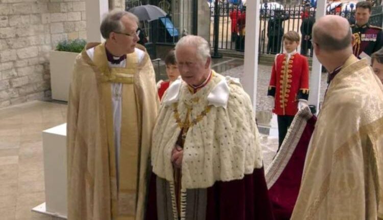 بدأ منذ قليل حفل تتويج ملك بريطانيا تشارلز الثالث، ملكا رسميا للمملكة المتحدة، وسط إجراءات أمنية مشددة وصفت بأكبر تجمع من القوات البريطانية، حدث بالمملكة المتحدة منذ حفل تتويج الملكة إليزابيث منذ 70 سنة، واصطف ما يقرب من 11 ألف جندي برفقة 19 فرقة موسيقى عسكرية خلال مسيرة التتويج على مسافة تمتد إلى ما يقرب من ميل.