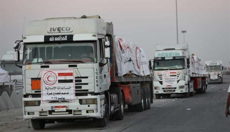 وأوضح بيان للهلال الأحمر المصري أن ثالث قوافل “زاد العزة .. من مصر إلى غزة” تضم مساعدات غذائية وإغاثية وطبية بإجمالي 1300 طن، تشمل نحو 440 طنا من سلال غذائية متنوعة، وقرابة 450 طن دقيق، ونحو 150 طن مستلزمات طبية، وقرابة 200 طن من مستلزمات العناية شخصية.