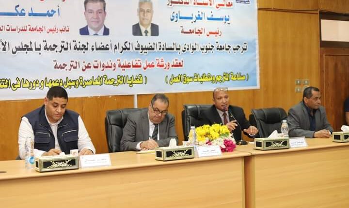 نيابة عن الدكتور يوسف غرباوي رئيس جامعة جنوب الوادي استقبل الدكتور بدوي شحات نائب رئيس الجامعة لشئون التعليم والطلاب والدكتور احمد كمال نصاري نائب رئيس الجامعة لشئون خدمة المجتمع وتنمية البيئة وفد لجنة الترجمة بالمجلس الأعلى للثقافة وهم الدكتور أنور مغيث أستاذ الفلسفة الحديثة والمعاصرة بجامعة حلوان ومقرر لجنة الترجمة بالمجلس الأعلى للثقافة، والدكتورة منى طلبة أستاذ الأدب المقارن بكلية الألسن بجامعة عين شمس، والدكتور عاصم العماري أستاذ اللغة الألمانية بكلية الألسن جامعة عين شمس، والدكتور ماجد الجبالي رئيس قسم اللغة البرتغالية بكلية الألسن جامعة أسوان، والدكتور سيد رشاد الأستاذ المساعد بقسم اللغات الإفريقية بكلية الدراسات الأفريقية العليا جامعة القاهرة -أعضاء لجنة الترجمة بالمجلس الأعلى للثقافة- وذلك ضمن ملتقى الترجمة “الترجمة ومستقبل الفكر الإنساني” والذي ينظمه لجنة الترجمة بالمجلس الأعلى للثقافة بالتعاون مع جامعة جنوب الوادي وهيئة قصور الثقافة تحت رعاية الدكتورة نيفين الكيلاني وزيرة الثقافة والدكتور يوسف غرباوي رئيس جامعة جنوب الوادي والدكتور هشام عزمي الأمين العام للمجلس الأعلى للثقافة