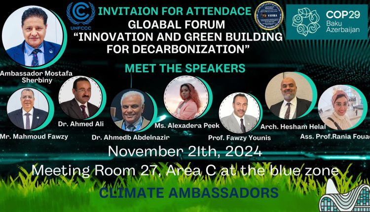 ضمن فعاليات قمة المناخ للأمم المتحدة COP 29، عقد سفراء المناخ برئاسة السفير مصطفى الشربيني منتدى هامًا اليوم الخميس 21 نوفمبر 2024 تحت عنوان “الابتكار والمباني الخضراء لإزالة الكربون”. في المنطقة الزرقاء Blue Zone، قاعة 27، المنطقة C، الساعة الواحدة ظهرًا بتوقيت باكو.