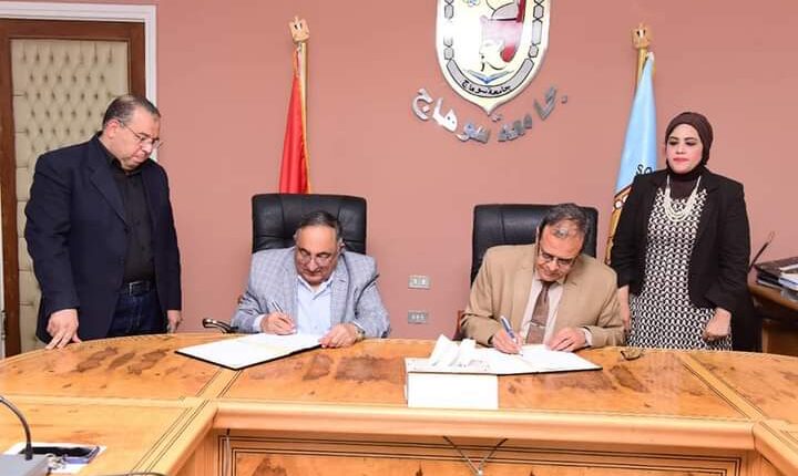 وقع الدكتور مصطفى عبدالخالق رئيس جامعة سوهاج، بروتوكول تعاون مع النقابة الفرعية لصيادلة سوهاج، ويمثلها الدكتور أحمد عبد الرحيم القاضي بصفته نقيب صيادلة سوهاج، في مجال تقديم خدمات مجتمعية وعلمية، وذلك بقاعة مجلس الجامعة بالحرم الجامعي القديم، بحضور المحاسب اشرف القاضي امين عام الجامعه، الدكتور أحمد أبوالقاسم أمين عام نقابة الصيادلة الفرعية بسوهاج، والدكتورة عبير محمود السيد مدير مركز جودة وسلامة الغذاء.