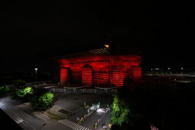 حملة “نور لا ينطفئ أبداً” تدعو أكثر من 550 مليون مشجع لميلان في العالم لإضاءة منازلهم ومدنهم والفضاءات الرقمية باللون الأحمر الذي ينبعث من ميلانو ليصل إلى جميع أرجاء العالم، والذي يتداخل مع لون الليل الأسود.