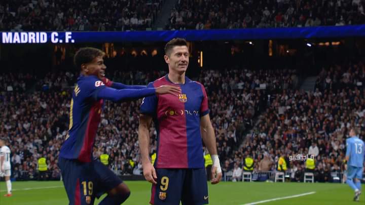 سجل ليفاندوفسكي هدفين لامين يامال هدف و رافينيا هدف لينتهي اللقاء ويتصدر برشلونه الجدول برصيد 30 نقطه .