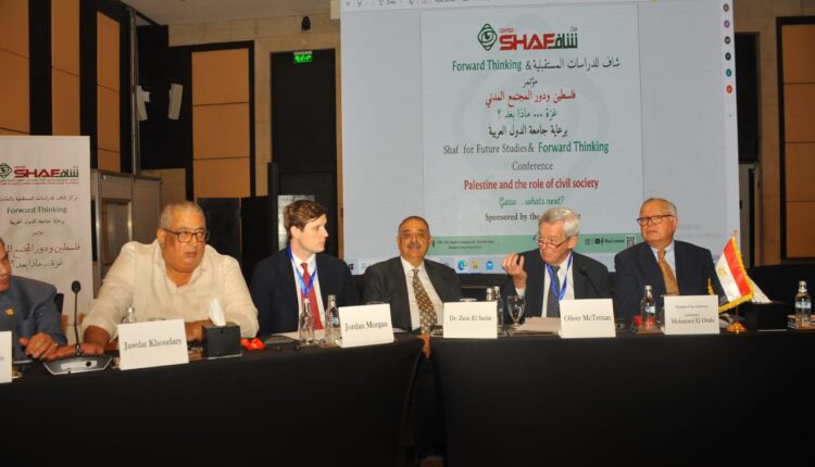 عقد اليوم مركز شاف للدراسات المستقبليه وتحليل الأزمات والصراعات بالتعاون مع مركز forword thinking مؤتمر بعنوان فلسطين ودور المجتمع المدني”غزة:ماذا بعد؟” تحت رعاية جامعة الدول العربية برئاسة السفير “محمد العرابي” وزير خارجية مصر الأسبق ورئيس لمركز شاف والدكتور “زين السادات” الأمين العام للمركز