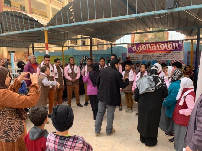 تحت رعاية الدكتور أشرف صبحي، وزير الشباب والرياضة والدكتور عبد الرازق دسوقي، رئيس الجامعة و الدكتور محمد عبد العال، نائب رئيس الجامعة لشئون التعليم والطلاب، نظمت الادارة العامة لرعاية الشباب ممثلة في ادارة النشاط الثقافي والفني وطلاب مراكز الفنون بالادارة قافلة فنية الى مدرسة التربية الفكرية والإعداد المهني بكفر الشيخ التابعة لإدارة التربية الخاصة والتي تقبل طلاب الإعاقة الذهنية حسب معامل الذكاء وتنقسم المدرسة الي مرحلة التهيئة والابتدائي ومرحلة الاعداد المهني ومرحلة التلميذة الصناعية ويوجد بها أقسام مهنية تريكو، زخرفة، جلود، والتي تضم عدد “٦٠” طالب وطالبة من ذوي الهمم.