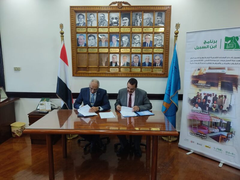 نيابة عن الدكتور عبد العزيز قنصوه رئيس جامعة الإسكندرية، وقع الدكتور على عبد المحسن القائم بأعمال نائب رئيس الجامعة لشئون التعليم والطلاب، بروتوكول التعاون المشترك مع مؤسسة مصر الخير ضمن أنشطة برنامج “ابن السبيل” بهدف المساهمة فى دعم الأنشطة الطلابية بالمدن الجامعية ومساعدة الطلاب المغتربين غير القادرين على سداد المصروفات الدراسية بالمدن الجامعية والذين تنطبق عليهم معايير ابن السبيل للعام الدراسي ٢٠٢٤/٢٠٢٣