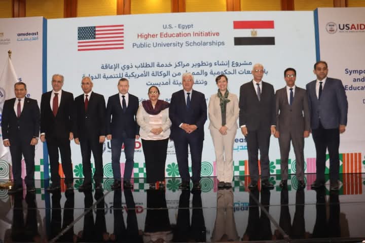 بحضور الدكتور أيمن عاشور وزير التعليم العالي والبحث العلمي، وعدد من رؤساء الجامعات وماريسول بيريز مديرة مكتب التعليم والشراكات بالوكالة الأمريكية للتنمية الدولية وكونيسي ديرمودي مدير برنامج منح الجامعات الحكومية بالوكالة الأمريكية للتنمية الدولية والسيد بن سايتس مستشار السفارة الأمريكية لشئون الأشخاص ذوي الإعاقة والدكتورة شيرين يحيى مستشار وزير التعليم العالي للطلاب ذوي الإعاقة.