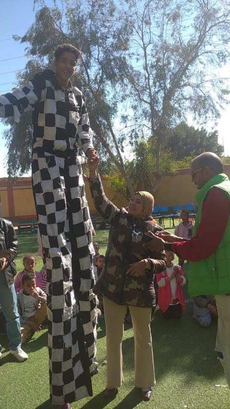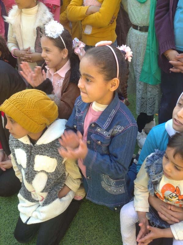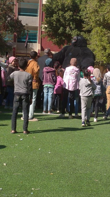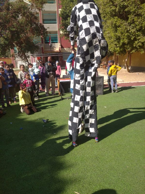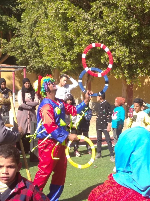 بين طلاب وطالبات المدرسة ثم قام فريق السيرك بتقديم فقرات متنوعة أسعدت التلاميذ