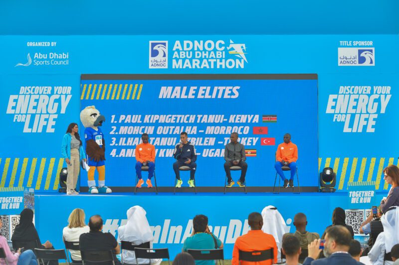 وأكدت اللجنة المنظمة للماراثون خلال مؤتمر صحفي عُقد في قرية الماراثون التي تقع خلف برج أدنوك والتي تضم عدداً من أجنحة الرعاة والشركاء وتقدم عروضاً ترفيهية وموسيقية للزوار، استكمال الاستعدادات لانطلاق الحدث الأبرز، وكُشف في المؤتمر عن أبرز العدائين والعداءات العالميين من المصنفين الأوائل.