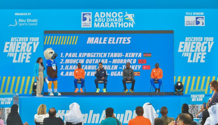 وأكدت اللجنة المنظمة للماراثون خلال مؤتمر صحفي عُقد في قرية الماراثون التي تقع خلف برج أدنوك والتي تضم عدداً من أجنحة الرعاة والشركاء وتقدم عروضاً ترفيهية وموسيقية للزوار، استكمال الاستعدادات لانطلاق الحدث الأبرز، وكُشف في المؤتمر عن أبرز العدائين والعداءات العالميين من المصنفين الأوائل.