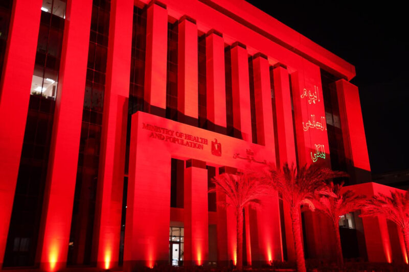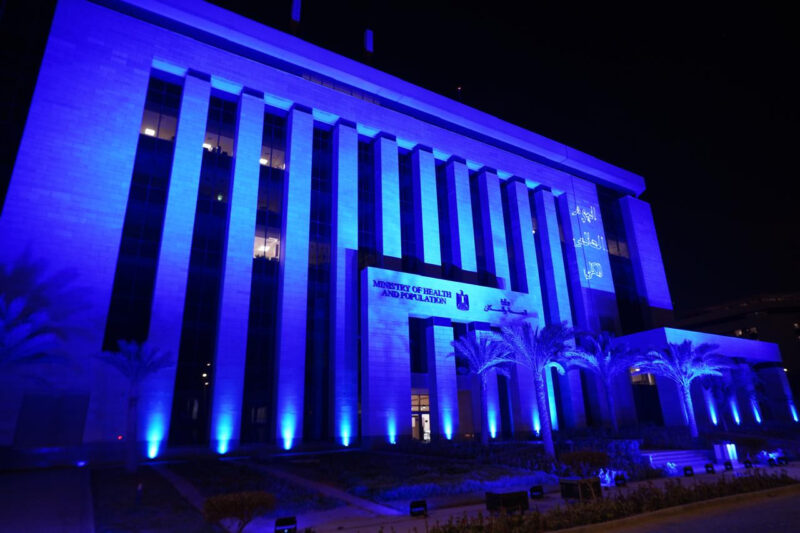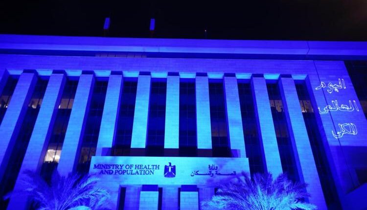 بمناسبة اليوم العالمي للكلى.. الصحة تضيء مبنى الوزارة بـ”الأزرق والأحمر”