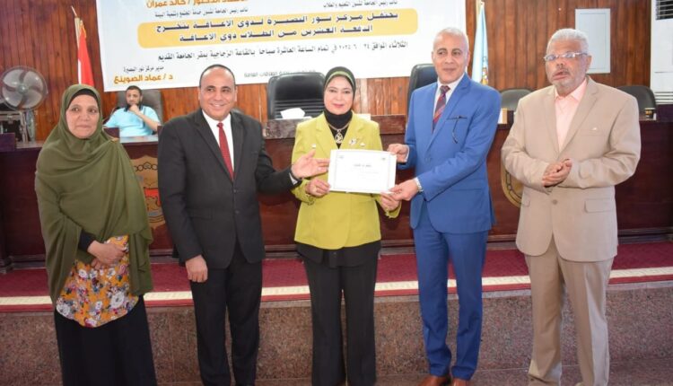 قامت كلية التربية النوعية بجامعة سوهاج بتكريم الدكتورة سهام الحكيم ، مدير إدارة التربية الخاصة بمديرية التربية والتعليم بسوهاج وذلك لمجهوداتها الكبيرة فى مجال التربية الخاصة من خلال مختلف مدارس التربية الخاصة على مستوى المحافظة بجميع انواعها ( سمعى وفكرى والنور للمكفوفين )
