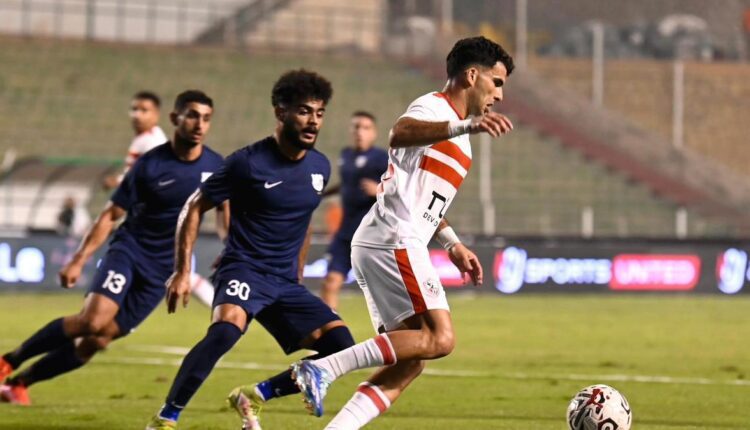 سدد اللاعب محمد حمدي كرة قوية علي شباك نادي الزمالك من ركلة حرة مرت بجوار القائم الأيمن لمرمي اللاعب محمد عواد.