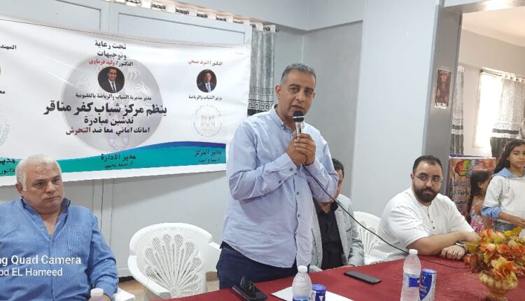 شهد الدكتور وليد الفرماوى وكيل وزارة الشباب والرياضة بالقليوبية، المبادرة التوعوية تحت عنوان “لا للمس – معا ضد التحرش”، وذلك بمركز شباب كفر مناقر، وسط حضور دينى ومجتمعى واسع .