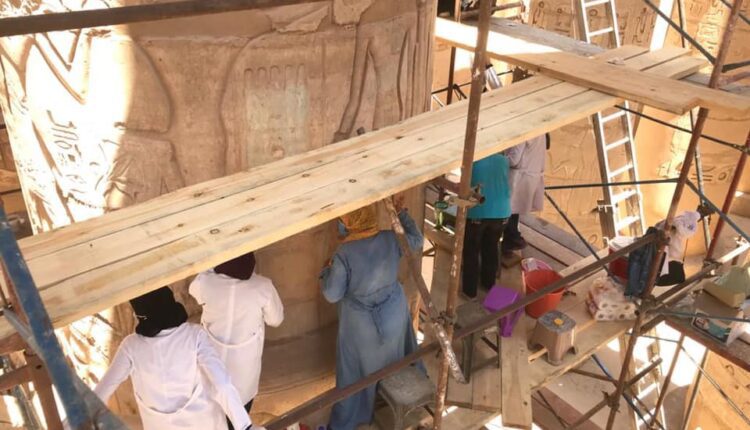 انهي فريق الترميم من وزارة السياحة والآثار بالتعاون مع عدد من خريجي أقسام الترميم بجامعتي الأقصر وجنوب الوادي ومعهد الترميم بالأقصر من ترميم ما يقرب من ٦٠٪ من أعمال ترميم العمود الأول بصالة الأعمدة الكبري بمعبد الكرنك و إظهار ألوانه الأصلية، وذلك بعد إزالة آثار التلف التي سببتها عوامل التعرية وجاري استكمال أعمال الترميم لباقي الأعمدة تباعا.