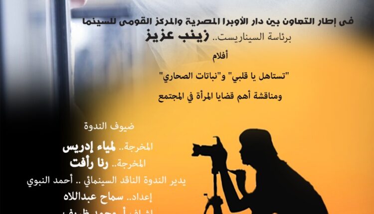 تنظم دار الأوبرا المصرية برئاسة الدكتور مجدي صابر في السابعة من مساء السبت المقبل الموافق ٢٩ من يناير حفل “نادي سينما أوبرا الاسكندرية” وذلك بالتعاون مع المركز القومى للسينما برئاسة السيناريست /زينب عزيز.. حيث يتم عرض أفلام”تستاهل يا قلبي” من اخراج لمياء ادريس “و نباتات الصحاري” من اخراج رنا رأفت.. يناقش الفيلمان أهم قضايا المرأة ومدي التحديات التي تواجهها المرأة في المجتمع. يعقب العرض ندوة فنية بحضور مخرجات الأفلام