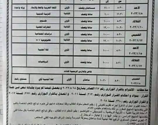 جدول امتحانات نصف العام 2023 في الشرقية