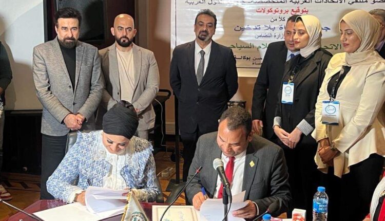وقعت ثلاث مؤسسات عربية كبري متعددة المجالات الخدمية ، بحضور ممثلي منظمة الصحة العالمية وجامعة الدول العربية ووزارتي الصحة والاتصالات بجمهورية مصر العربية ، عددا من بروتوكولات التعاون في المجالات المذكورة وتمثلت قوي تحالف التعاون من الاتحاد العربي للعمل الانساني والتنمية المستدامة عضو ملتقى الاتحادات العربية المتخصصة – جامعة الدول العربية وتمثلها الدكتورة مايسة الهاشمي والاتحاد العربي للإعلام السياحي وتمثلها الدكتورة لمياء محمود
