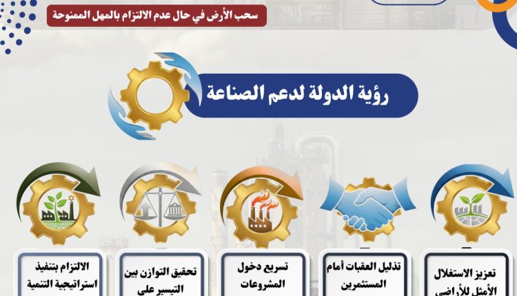 ويأتي هذا القرار بهدف تمكين المستثمرين الجادين من إكمال مشروعاتهم دون خسائر واعباء مالية كبيرة، وعلى سرعة دخول المشروعات المتعثّرة إلى مرحلة التشغيل، مع مراعاة تحقيق التوازن بين تيسير الإجراءات على المستثمرين ودعم المشروعات المتعثرة، والحفاظ على حقوق الدولة واستغلال الأراضي الصناعية الاستغلال الأمثل، والدولة ماضية في تنفيذ استراتيجية شاملة لتحقيق التنمية الصناعية المستدامة وتعميق القيمة المضافة المحلية، وأن هذا القرار بمنح المزيد من الحوافز يُعبّر عن دعمها والتزامها الكامل تجاه المستثمر الجاد والتوزيع العادل للفرص.
