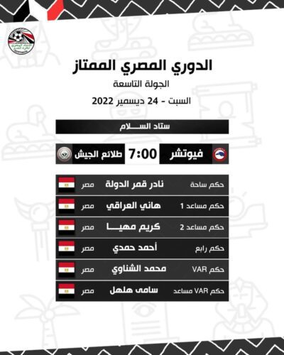 وعلى صعيد المسئولين عن تعيين الحكام لإدارة مباريات المسابقات المختلفة بالكرة المصرية، جاء التشكيل كالتالي: