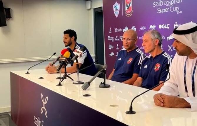 يحضر مارسيل كولر، المدير الفني للنادى الأهلى، ومحمد الشناوي قائد الفريق، المؤتمر الصحفى لمباراة الفريق أمام ريالمدريدالاسباني والذى سيقام فى الواحدة إلا الربع ظهرا ، غدا الثلاثاء بتوقيت القاهرة، بملعب مولاي عبد الله في العاصمة المغربية الرباط.
