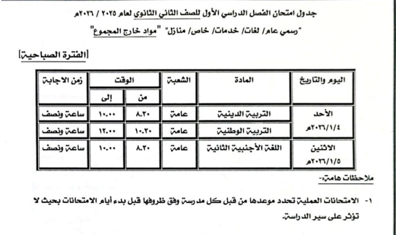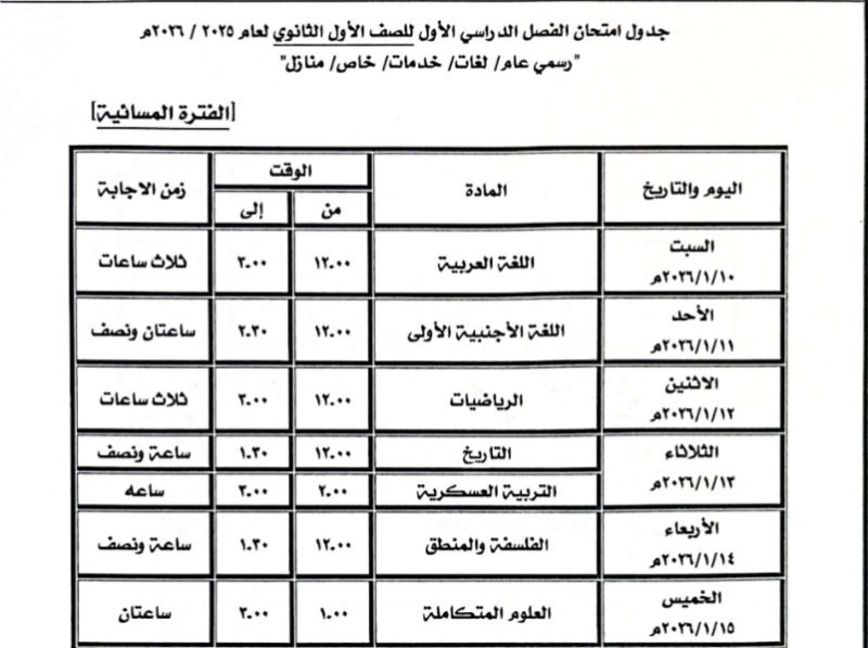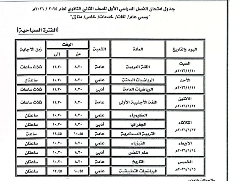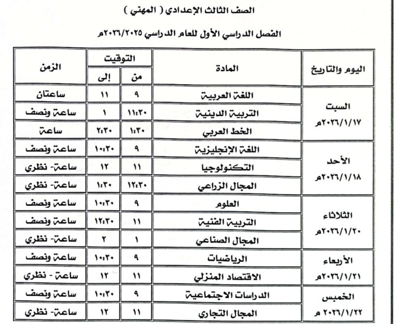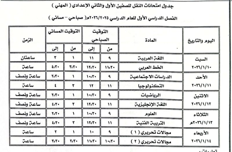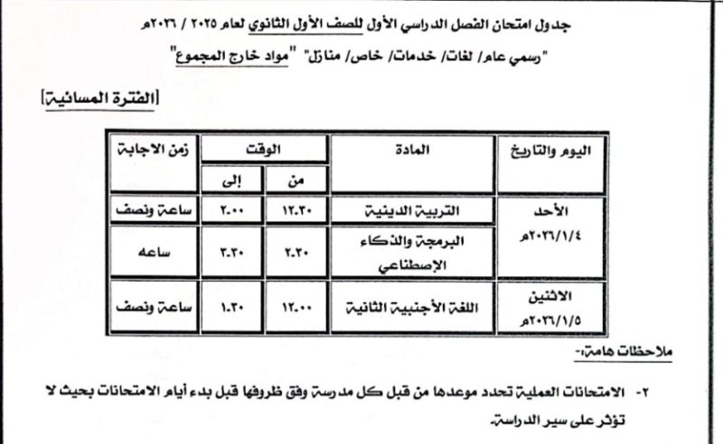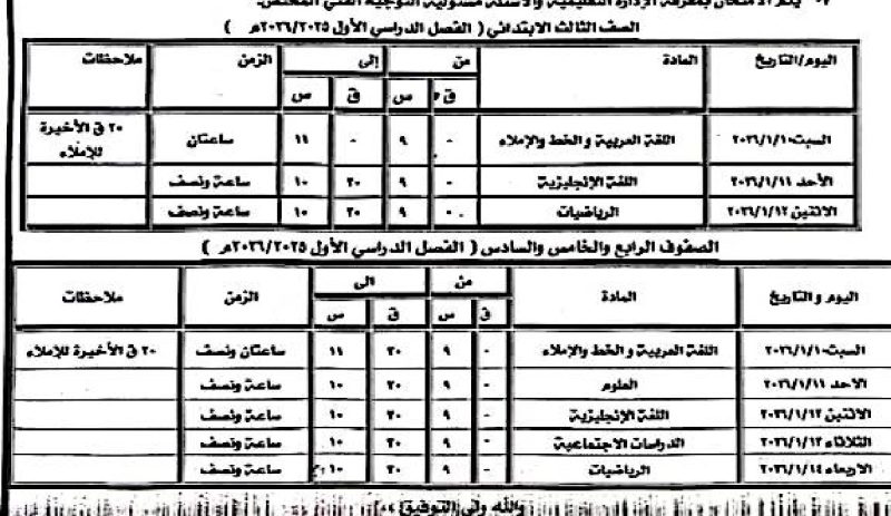 تعليم كفر الشيخ يعلن عن امتحانات الفصل الدراسي الأول من 1ل 22 يناير 2026