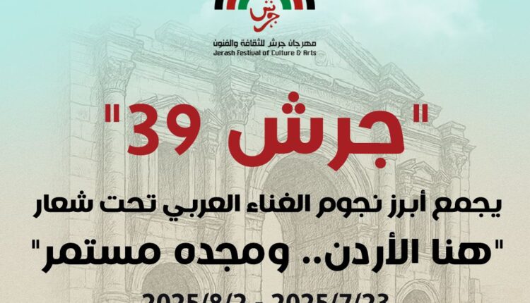 تنطلق الأربعاء 23 تموز المقبل، فعاليات الدورة (39) لمهرجان جرش للثقافة والفنون التي تستمر حتى 2 آب المقبل، وتحمل هذا العام شعار”هنا الأردن.. ومجده مستمر”.