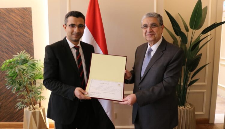 قدم الدكتور شاكر وزير الكهرباء والطاقة المتجددة شهادة تقديرية للسيد الدكتور” احمد سامى حسن على ” مهندس ثان ورئيس قسم بالمكتب الفنى لسيادته  وذلك لحصوله على درجة  الدكتوراه  الفلسفة فى هندسة القوى الكهربية عن موضوع :