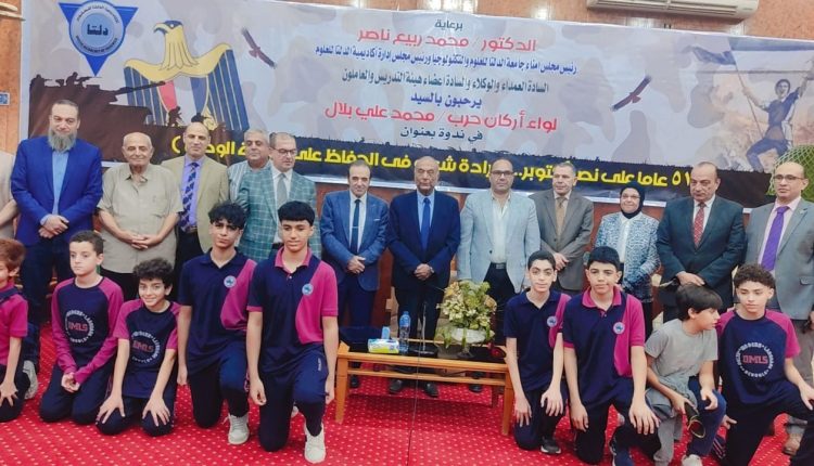 تحت رعايه الدكتور محمد ربيع رئس الاتحاد العربى لتعليم الخاص وبحضور محاسب ايهاب ناصر خليفه رئس مجلس إدارة المعهد العالى للخدمه الاجتماعيه بالمنصورة تم تنظيم ندوة تثقفيه بمناسبه مرور 51 عام عن حرب اكتوبر وبحضور اللواء اركان حرب محمد على بلال أحد ابطال حرب أكتوبر وقائد القوات المصريه بحرب تحرير الكويت والذى أكد خلال كلمته أن اى أمه إذا تحقق لها بعض العناصر تسطيع أن تقف أمام أعتى التهديدات وهو ما تحقق فى حرب أكتوبر منها الوفاق الوطن وأن تكون الامه متماسكه على قلب رجل واحد لذلك نجاح الجيش العظيم فى عبور قناة السويس وتحطيم خط بارليف وأكد أن حرب اكتوبراظهرت قوةوارادة المقاتل المصرى وتحقيقه معجزة النصر وقدشارك بالحضور من ابطال حرب أكتوبر لواء حاتم عبداللطيف وقد حرص على المشاركه لواء دكتور عبدالوهاب الراعى والمهندس حاتم عبداللطيف