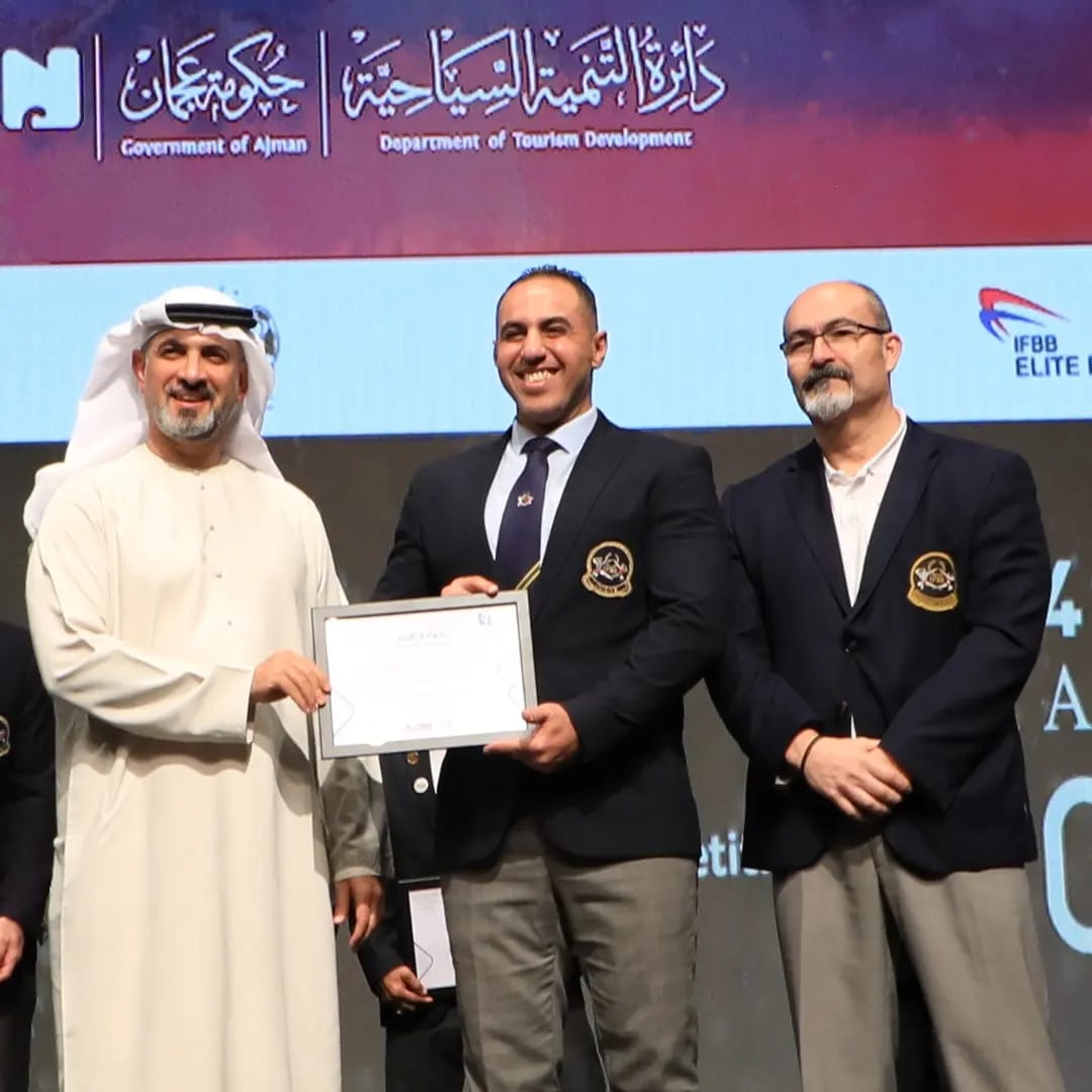حرصت إدارة بطولة عجمان الثالثة لبناء الأجسام والكلاسيك والفيزيك ٢٠٢٣ المقامة علي المسرح الثقافي إمارة عجمان في الإمارات العربية المتحدة الشقيقة على تكريم المدرب والحكم الدولي المحترف محمد محسن وتسلمها من رئيس لجنة الحكام الدولي خوسي ماريا و محمد المري المدير التنفيذي للإتحاد الإماراتي لبناء الأجسام واللياقة البدنية