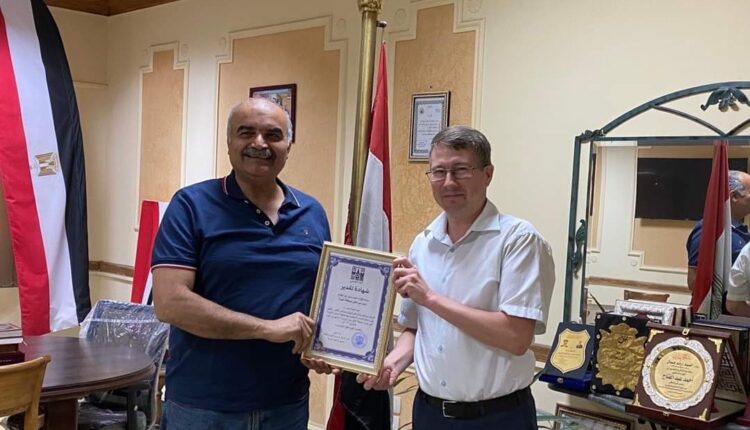 كرم “مراد جاتين” مدير المراكز الثقافية الروسية فى مصر، اللواء دكتور “أحمد محمد عبد الفتاح” رئيس حى الدقى والاستاذة “ملكة جمال مصطفى”، فى اطار التعاون المشترك مع أنشطة المركز والتى تمثلت فى زرع اشجار السلام فى حديقة الأورمان بمناسبة عيد النصر وتسليم التبرعات لإحدى دور الأيتام.