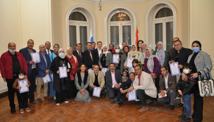 ومن جانبه قام مراد جاتين بتكريم مجموعة من الخريجين والإعلاميين لدورهم المتميز فى دعم العلاقات المصرية الروسية كل في مجاله .