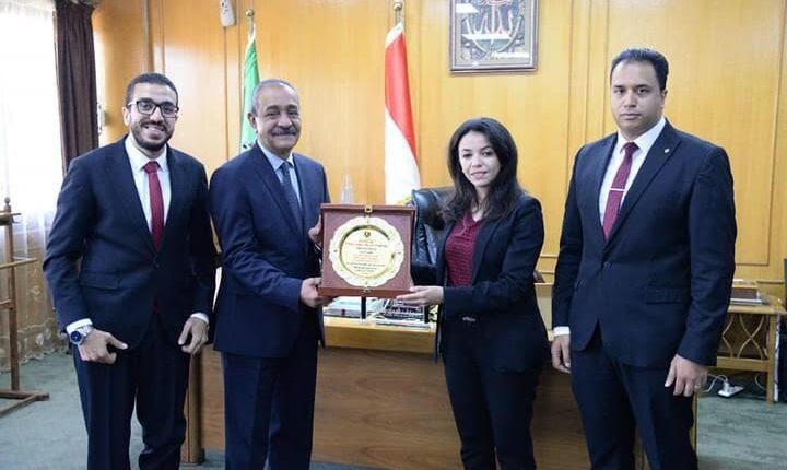 وقام المحافظ بإهداء درع المحافظة لوفد المتدربين التنفيذيين إيمان احمد محمد أحمد رجب، و محمد سعيد محمد أحمد ، و محمد محمد السيد عناني، متمنيا لهم التوفيق والنجاح
