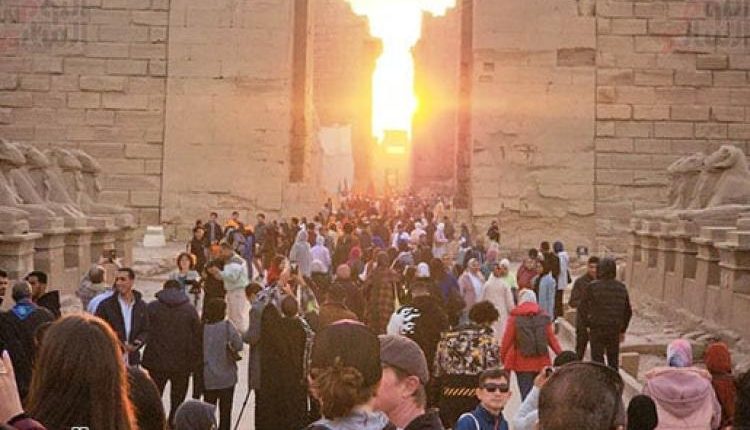 توافد السياح على معابد الكرنك لمشاهدة تعامد الشمس على مقصورة قدس الأقداس