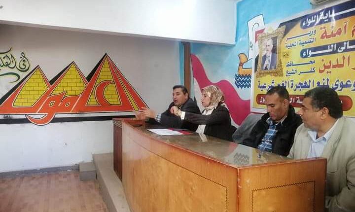 البرنامج التوعوي تحت رعاية اللواء هشام آمنه وزير التنمية المحلية واللواء جمال نور الدين محافظ كفرالشيخ وإشراف ومتابعة عصام القصيف رئيس مدينة ومركز الحامول .. بعنوان «منع الهجرة غير الشرعية والاتجار بالبشر».