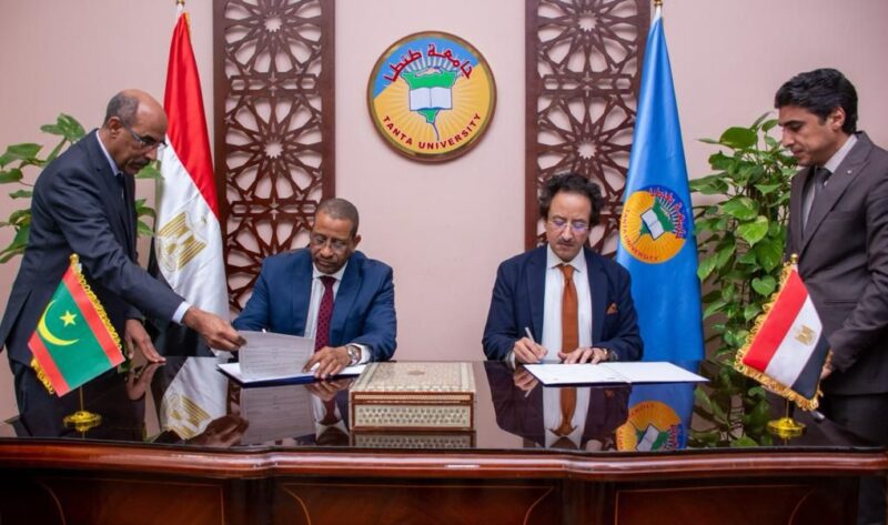 استقبلت جامعة طنطا اليوم وفدا من جامعة نواكشوط بدولة موريتانيا لتوقيع اتفاقية تعاون بين الجامعتين، ضم الوفد الموريتاني الدكتور الشيح سعد بوه كمرا رئيس جامعة نواكشوط، والدكتور سالم عبدينا عميد كليه العلوم القانونية و الاقتصادية، والدكتور محمد سعيد بنيه عميد كلية العلوم و التقنيات، والدكتور المختار الجيلاني المحلق الثقافي بالسفارة الموريتانية بالقاهرة.