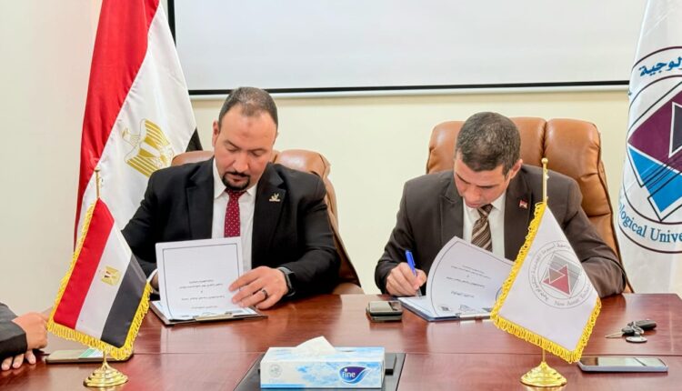 وشهد توقيع البروتوكول أ.د.على محمد يوسف نائب رئيس الجامعة لشئون التعليم والطلاب، وأ.د/ ولاء محمود الشريف عميد كلية العلوم الصحية التطبيقية، وأ.د .خليل علي خليل عميد كلية تكنولوجيا الصناعة والطاقة.