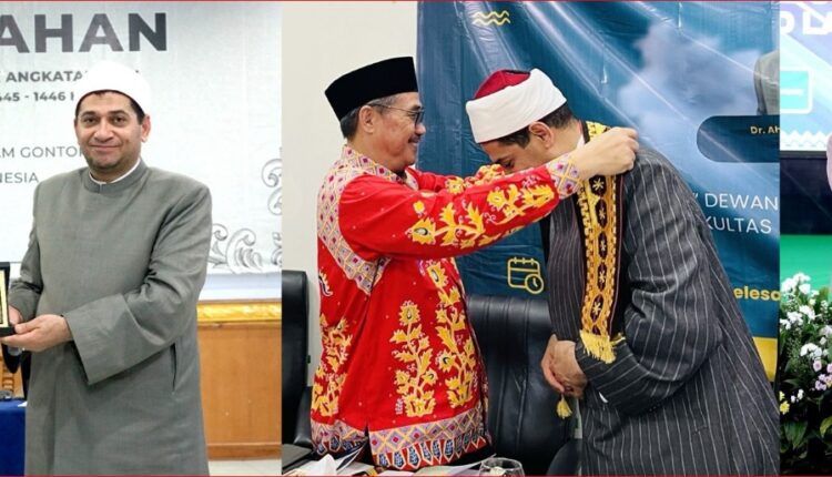 ثانيًا: تكريمه من قِبل عميدة كلية الشريعة جامعة رادين إنتان الأستاذة الدكتورة إيفا راضية نور، والأستاذ الدكتور/ يوسف بيهقي الوكيل الأول لكلية الشريعة، وقيادات الكلية، تقديرًا لجهوده العلمية والفكرية والتجديدية، بعد إلقاء محاضرة علمية بعنوان: (نحو اجتهاد عصري لتجديد مستدام)، ودعوته إلى إنشاء معهد عالمي لتكوين المجتهدين وتدريبهم، بالتعاون بين الأزهر الشريف ووزارة الأوقاف والشؤون الدينية الدول الإسلامية، والمجامع الفقهية المنتشرة في العالم والمؤسسات الدينية الإندونيسية، بحضور عدد من السادة العلماء والعمداء والوكلاء والباحثين وطلاب الدراسات العليا وطلاب الشريعة في الجامعة، يوم الأربعاء 19 من ذي الحجة 1445هـ/ 26 يونيه 2024م.