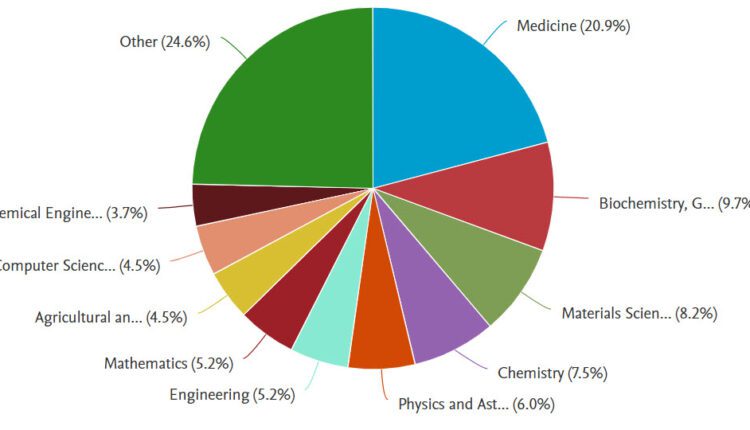 وأشار رئيس الجامعة أن نتائج هذا الأسبوع قد أظهرت أن النشر الدولى كان جيدًا (64 بحث) وكان توزيع التخصصات كالتالي في مجال العلوم الأساسية (29.2%) وشملت كلا من الكيمياء الحيوية والوراثة والبيولوجيا الجزيئية (9.7%)، الكيمياء (7.5%)، الفيزياء والفلك (6%)، الرياضيات (5.2%)، علوم الحاسب (4.5%)، علوم البيئة (4.2%)، يلي العلوم الأساسية العلوم الطبية (20.9%)، ثم علوم المواد (8.2%)، فالصيدلانيات وعلوم السموم (5.8%)، فالهندسة (5.2%)، والزراعة والعلوم البيولوجية (4.5%)، والهندسة الكيميائية (3.7%).
