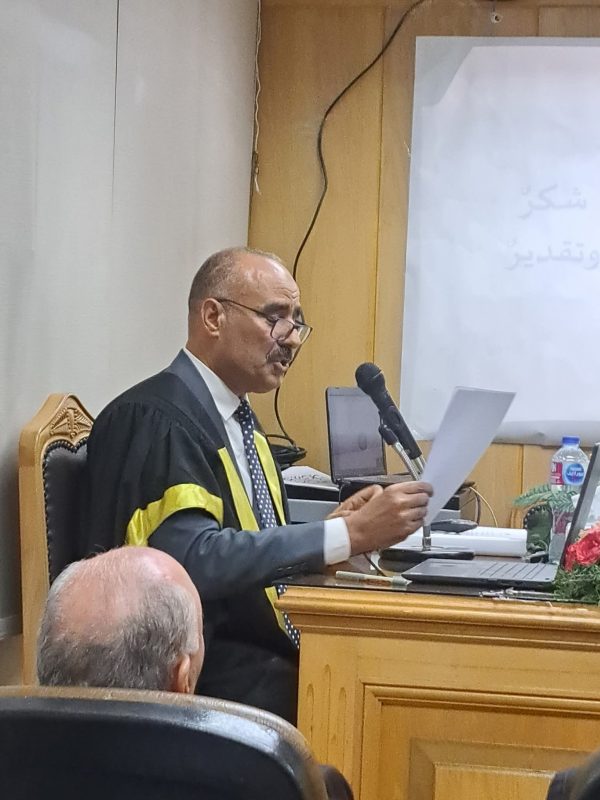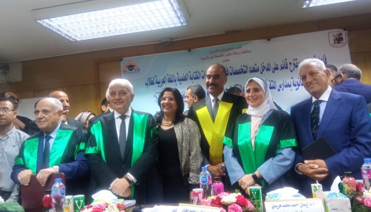 الأستاذ الدكتور محمد حسن المرسي (أستاذ المناهج وطرق تدريس اللغة العربية بجامعة دمياط وعضو مجمع اللغة العربية) – رئيساً ، الأستاذ الدكتور رضا حجازي رضا السيد محمود حجازي (أستاذ المناهج وطرق التدريس، وزير التربية والتعليم السابق ورئيس جامعة الريادة) – عضواً ،الأستاذة الدكتورة إيمان أحمد محمد هريدي (أستاذ المناهج وطرق التدريس وعميد الكلية) – مشرفاً وعضواً ، الدكتور مصطفى عرابي عزب محمود (أستاذ مساعد بقسم المناهج وطرق التدريس بالكلية) – مشرفاً وعضواً.