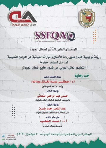 يعتزم مركز ضمان الجودة بجامعة سوهاج عقد المنتدى الثاني لضمان الجودة وذلك يوم الثلاثاء الموافق 30 نوفمبر 2021، بمقر مركز المؤتمرات الدولية بمقر الجامعة الجديد، صرح بذلك الدكتور مصطفى عبد الخالق رئيس الجامعة وقال ان المنتدى تحت عنوان رؤية توجيهية لادماج فنون ريادة الاعمال والمهارات الحياتية في البرامج التعليمية كمدخل لتطوير منظومة التعليم العالي العربي في ضوء معايير ضمان الجوده، مشيرا الى أن المنتدي سوف يتضمن ورش عمل متخصصة، تقديم رؤى علمية، وكذلك الخبرات والتجارب المتخصصه من الشركاء ومؤسسات المجتمع .