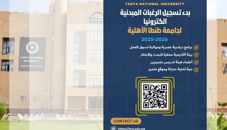 أعلن الدكتور محمد حسين رئيس جامعة طنطا والقائم بتسيير أعمال جامعة طنطا الأهلية، عن فتح باب تسجيل الرغبات المبدئي بكليات وبرامج جامعة طنطا الأهلية لطلاب الثانوية العامة الراغبين في الالتحاق للعام الدراسي الجديد 2025 /2026، ويأتي هذا الإعلان بالتزامن مع الإطلاق الرسمي للموقع الإلكتروني الجديد للجامعة، والذي يهدف إلى توفير منصة متكاملة للطلاب وأولياء الأمور للتعرف على البرامج الأكاديمية، شروط القبول، والمزايا التي تقدمها الجامعة