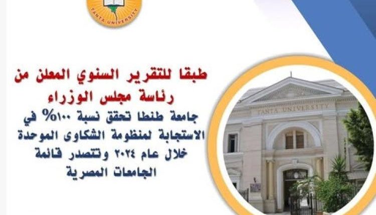 أعلن الدكتور محمد حسين القائم بعمل رئيس جامعة طنطا عن تحقيق جامعة طنطا نسبة 100% في الاستجابة لمنظومة الشكاوى الموحدة بمجلس الوزراء لعام 2024 للعام السادس على التوالي لتتصدر قائمة الجامعات المصرية طبقا للتقرير المعلن من رئاسة مجلس الوزراء، عن الفترة من 1/1/2024 إلى 31/12/2024.