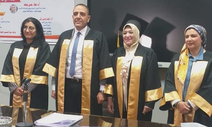 وتشكلت لجنه المناقشه من الدكتورة “نجلاء حسن جمعه” أستاذ إدارة الأعمال المساعد ورئيس قسم إدارة الأعمال بكلية التجارة الدكتورة “مي سيد محمد جاد الرب” مدرس إداره الأعمال المساعد بكلية التجارة جامعة قناة السويس، فضلاً عن الدكتور “أحمد عزمي زكي” أستاذ إدارة الموارد البشريه كلية التجارة جامعة المستقبل، والدكتورة “دينا عبد العاطي” أستاذ إداره الأعمال المساعد بالمعهد التكنولوجي بالعاشر من رمضان